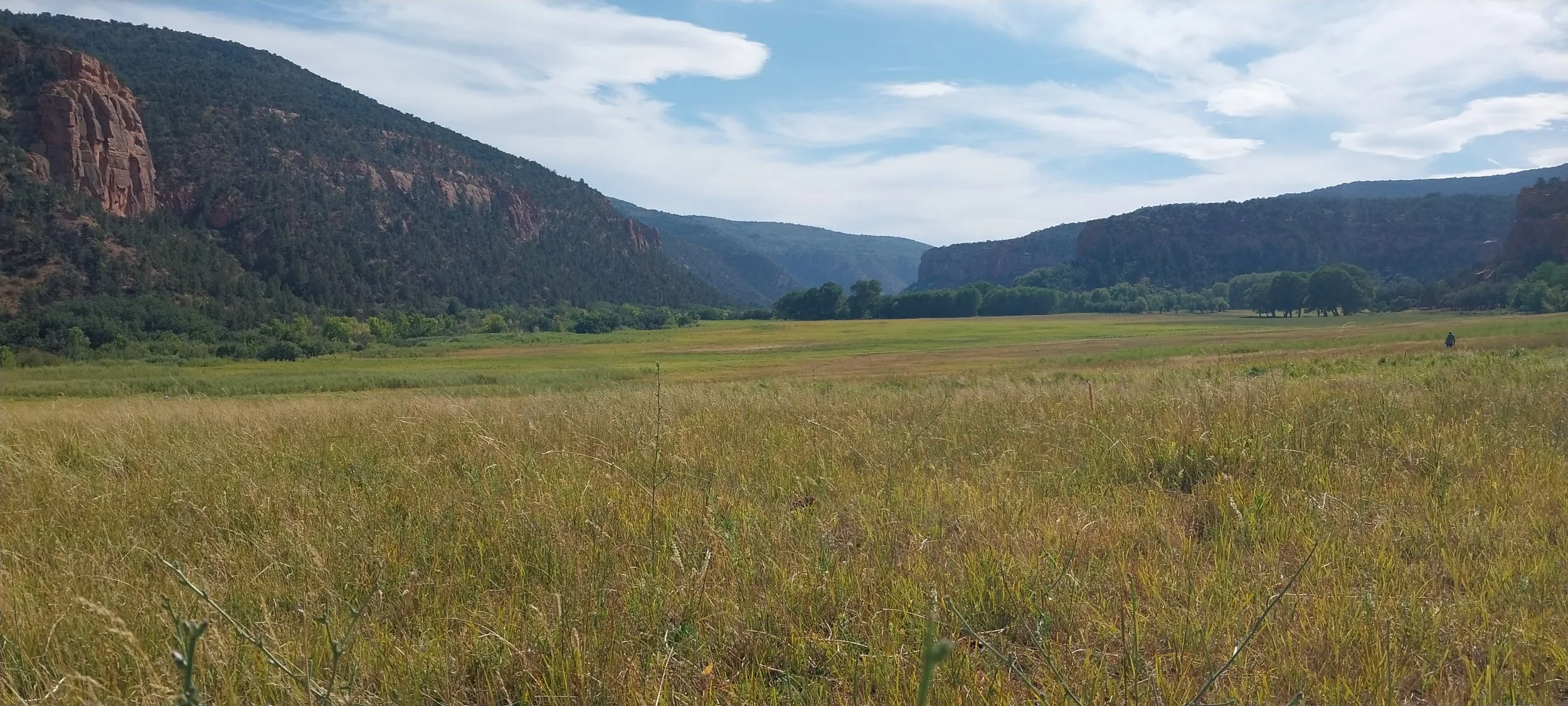 In 2024 and 2025, SSI partnered with BLM Colorado and the Nature Conservancy to conduct springs inventories on Escalante Ranch, a formerly private ranch within the Dominguez-Escalante National Conservation Area that has now transitioned to the BLM. This exciting acquisition led to a need to document the many springs emerging from the Wingate and Chinle sandstone formations in this beautiful canyon, that directly contribute to Escalante Creek and the Gunnison River, home to endangered species including the Colorado Pikeminnow and the Razorback Sucker. While surveying, SSI discovered an abundant population of the threatened Silverspot butterfly, and good numbers of bog violet, the caterpillar’s sole food plant. This exciting discovery will help guide wet meadow grazing and mowing on the ranch, with a view to protecting this important plant and its associated rare butterfly.